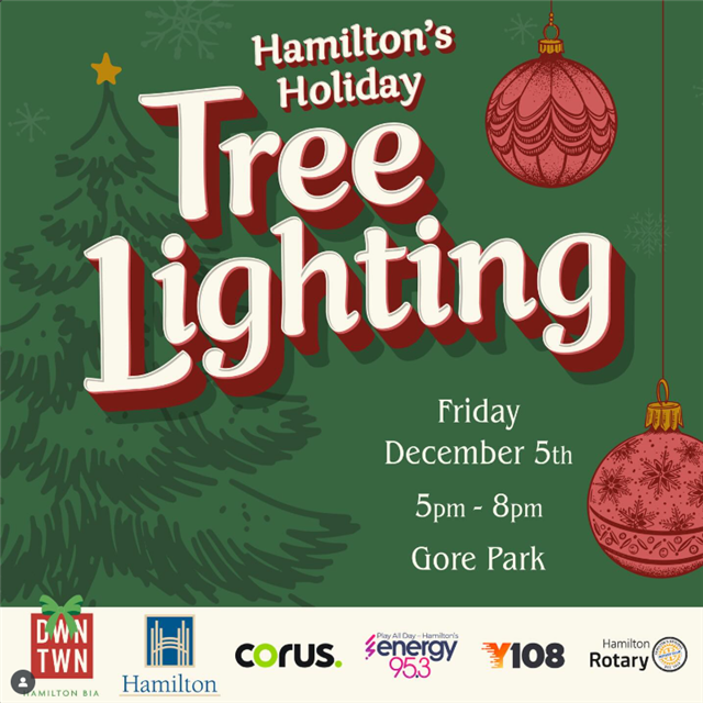 Join us in Gore Park on Friday, December 5 from 5 to 8 PM to light the tree and kick off the holiday season!