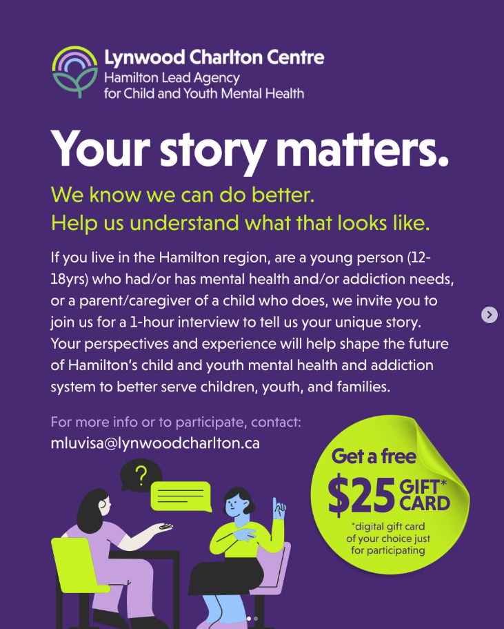 Lynwood Charlton Centre wants to hear from youth (ages 12-18) and parents/caregivers about your experiences—both in getting help and the barriers you've faced.